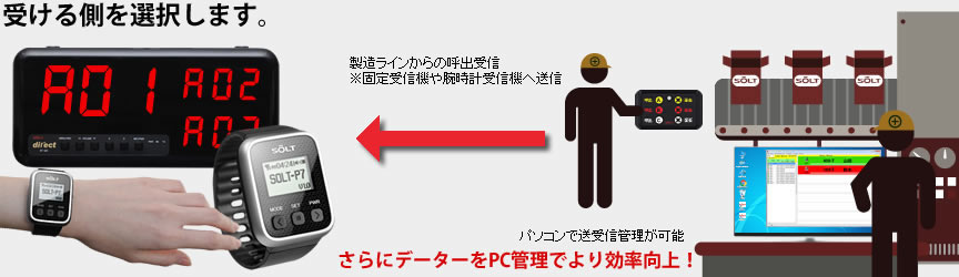 ※受信距離目安は特定小電力なので約100M受信ですが工場内の壁や建屋により異なります。 ※固定受信機がなくても腕時計受信機と送信機の組合せでご使用いただけます。
